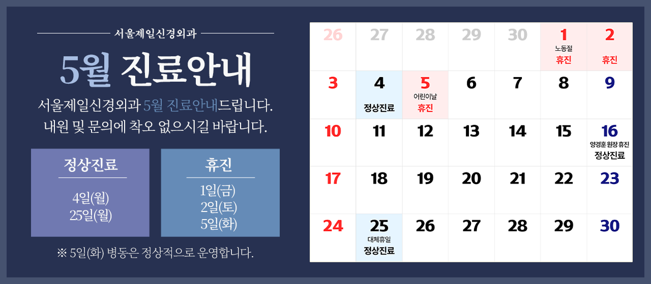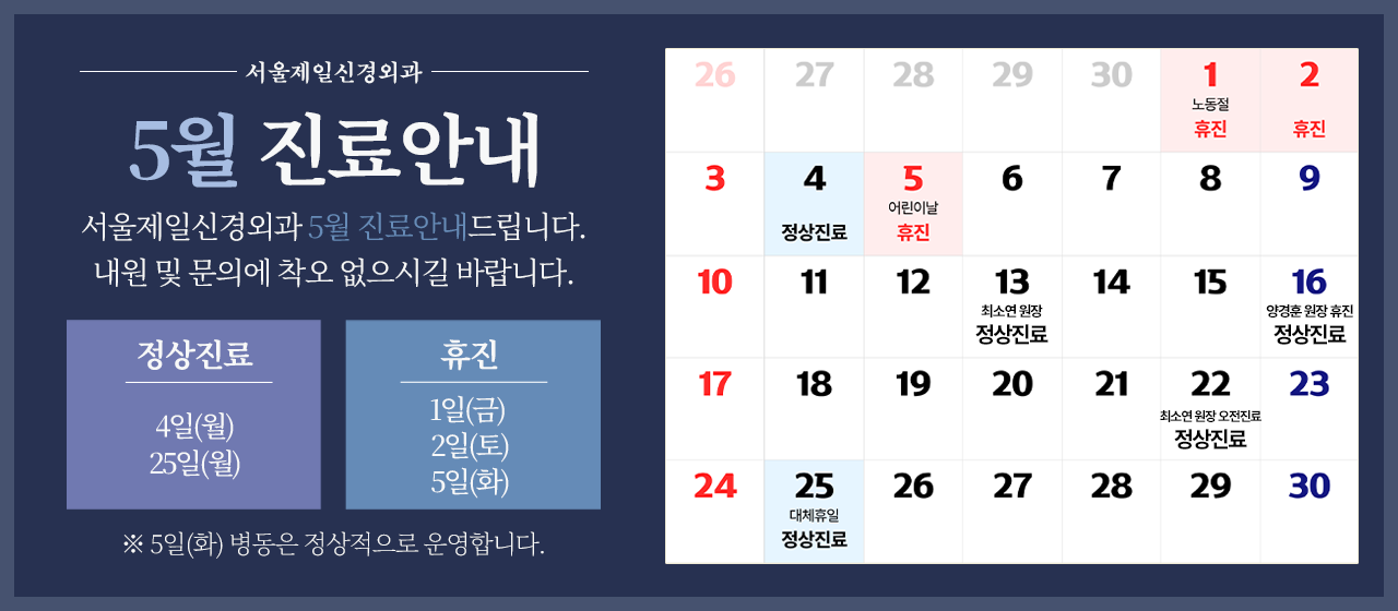 ※ 일요일 및 공휴일은 휴진합니다.